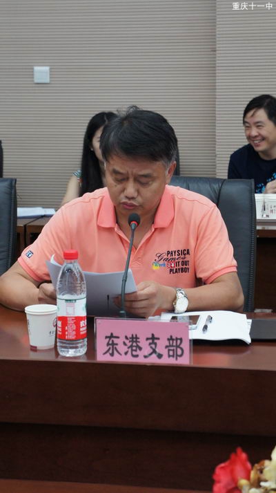 2016年6月23日上午,区教委第二片区落实全面从严治党责任述职报告会在重庆十一中体艺馆负一楼圆桌会议室召开,会议由南岸区教委人事科科长骆芳同志主持,南岸区教育工委副书记龙晓梅出席会议并做了总结点评。中共南岸区东港学校党支部书记康肇军、中共重庆电大南岸分校支部书记刘渝宁、中共重庆市南岸区铜南学区支部书记江洋分别作了述职报告。东港学校、天台岗小学、天台岗融创小学、兴隆湾小学、野猫溪小学、电大南岸分校、金科十一中的党组织负责人及学校负责人,以及各学校的党员代表、群众代表共27人参加了会议。