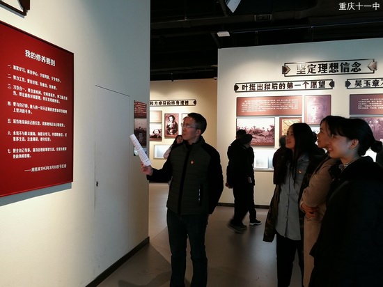 为继承和发扬党的光荣传统,接受革命传统教育,进一步增强党的凝聚力和战斗力,激励广大党员坚定理想信念,不忘初心,牢记使命,为新时代党的发展和教育事业做出力所能及的贡献,加强对习近平新时代中国特色社会主义思想的学习,中共重庆市第十一中学校高中第一支部委员会于11月21日组织支部党员干部参观了红岩革命纪念馆,党支部书记梁龙全同志现场给支部党员上了一节党课。