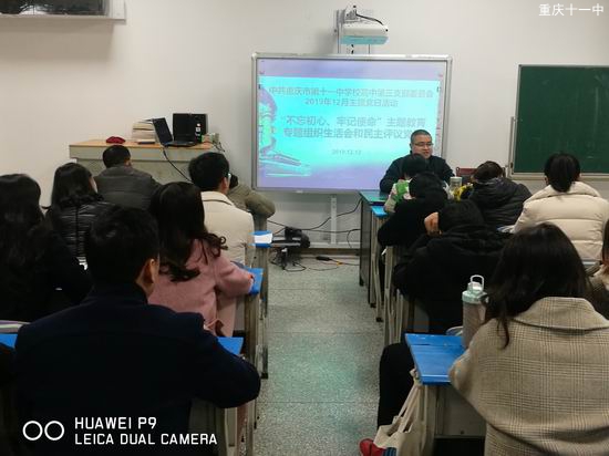 2019年12月12日晚6:00-8:30,重庆11中高中第三党支部在博文楼走班教室召开2019年组织生活和民主评议专题会。