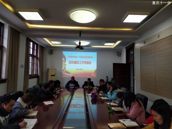 1月2日下午,中共重庆市第十一中学校行政支部委员会“1月主题党日活动”及“党风廉政工作专题会”在精益楼会议室召开,学校党委副书记欧宾同志到会并讲话,党支部书记谢红卫同志主持会议。