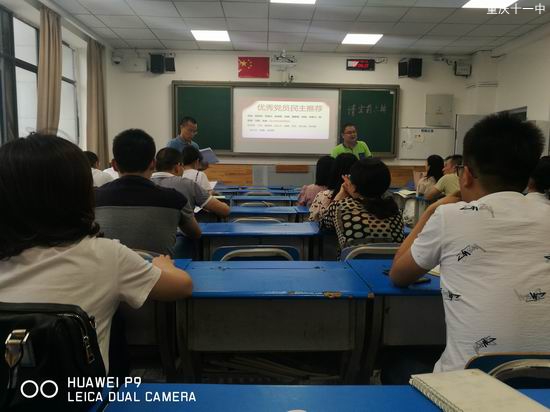 6月11日下午,高中第三党支部组织全体党员学两会精神,开展七、一优秀党员的推荐活动。