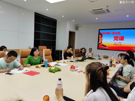 2020年7月10日下午,初中第一党支部在文德学校圆桌会议室召开扩大会议,邀请全年级教师与党员一起聆听支部书记周登秀同志党课。