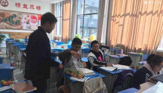 年级在自习之余,给学生们带来水果,为学生加油鼓劲