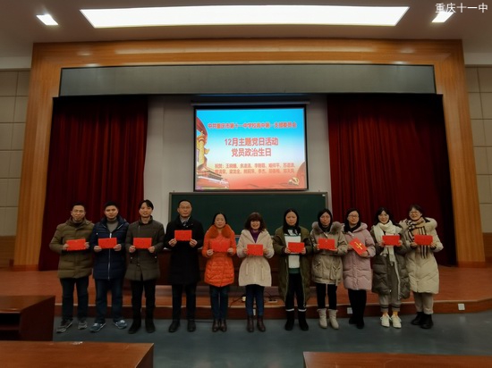 为深入推进“思想奠基.党性塑造”工程,增强党员的荣誉感和责任感,激发党员的工作积极性、主动性和创造性。12月15日下午,高中第一党支部在科技报告厅开展了“党员政治生日”主题活动,为本月过生日的11位党员举行了集体“庆生”活动。