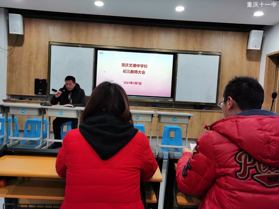 副校长唐荣龙首先详细分析了12月月考成绩,再次明确了学校绩效考核指标。党委委员、副校长肖开模同志转达了区教委龙晓梅书记到校调研时对文德学校的殷切期盼,回顾了阳光之家“敢打胜仗,善打胜仗”的光荣传统,并对期末工作和寒假管理提出总体要求。教师发展中心主任、年级主任娄凌翔详细解说了《课堂常规检查实施方案》,把我年级工作放在文德开局之年、11中110周年校庆的大背景下,对年级期末工作作出具体布置和安排。支部书记周登秀同志代表支委会向所有党员提出具体要求,勉励全体党员同志牢记学校和家长的信任,在期末各项工作中做出表率,克服重重困难,为学校的发展争口气。
