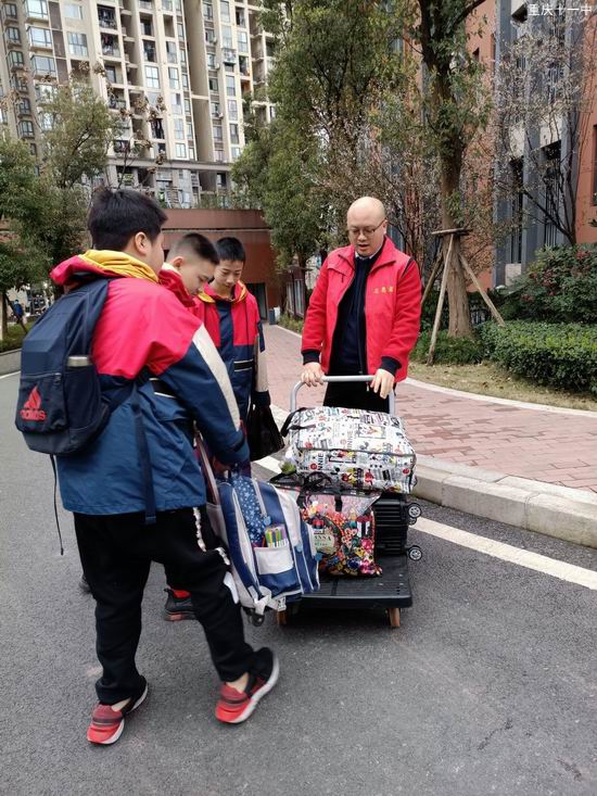 刘书记帮助学生搬运物品