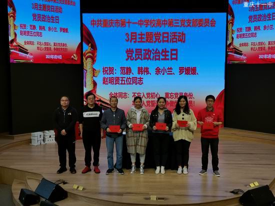 2020年3月18日,重庆第十一中学高中第三党支部在“识益”演播厅开展了3月主题党日活动。本次活动由宣传委员杨辉斌同志主持,第三党支部全体党员参会。会议内容如下: