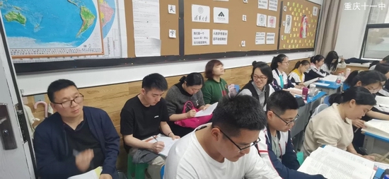 授课完毕,全体教师移步年级办公室,集中评课磨课。