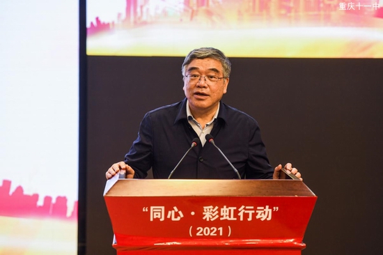 重庆市第十一中学校校长钟进友致欢迎辞并讲到,“同心·彩虹行动”西部教师公益培训项目落户十一中,极大地激励了全体十一中人不忘教育初心、继续砥砺前行的奋斗热情。学校将不负领导厚望,积极贡献全体十一中人的智慧和力量,让“同心·彩虹”这道七彩之光照亮更美好的教育未来。