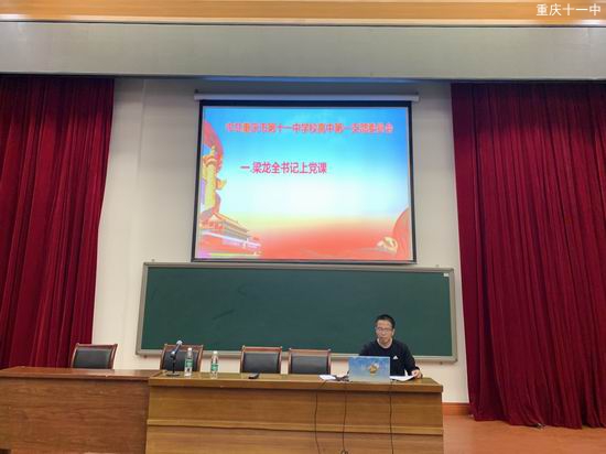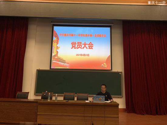 重庆市第十一中学校高中第一党支部于4月23日召开党员大会,梁龙全书记给全体党员上党课,题目为“学习老一辈革命家精神风范,坚守共产党人初心和使命”。