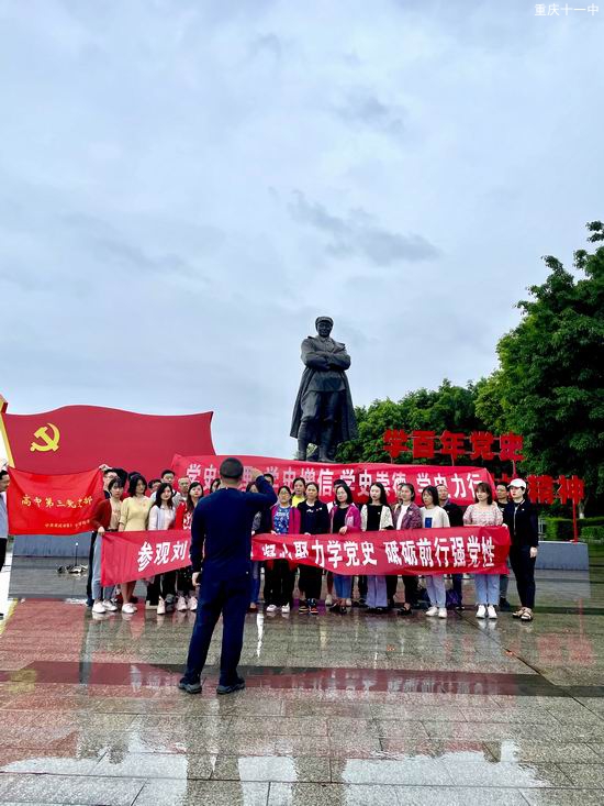 5月16日9:30左右,重庆市第十一中学校高中第三党支部全体党员冒着小雨来到刘伯承同志的纪念馆。在讲解员的带领下,按历史轨迹,先后参观了“壮志英华,从戎救国”“土地革命,屡建奇功”“烽火抗战,尽显神威”“解放战争,功勋卓著”“开国元勋,再铸伟业”“一代名师,风范千秋”六个陈列布展厅。党史专家用大量丰富的文物资料和图片,给大家讲解了刘伯承元帅在长征中智取遵义、强渡大渡河、彝海结盟,在抗日烽火中奇袭阳明堡、伏击神头岭,在解放战争中千里跃进大别山、解放大西南等丰功伟绩,生动再现了刘伯承元帅光辉伟大的一生。通过图文并茂的近距离党史学习,同志们深刻感受到刘伯承元帅视死如归的大无畏革命精神和坚毅顽强的战斗精神,这是留给我们新时代党员的宝贵精神财富。