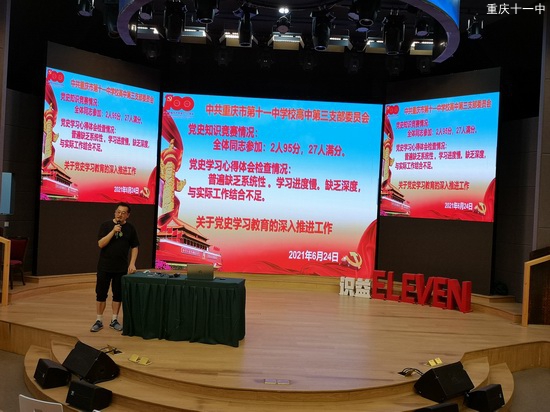 根据学校党办安排,深入推进党史学习教育工作,重庆市第十一中学校高中第三党支部研究决定2021年6月24日下午4:50在识益演播厅召开党员大会。本次会议共分为四个环节。