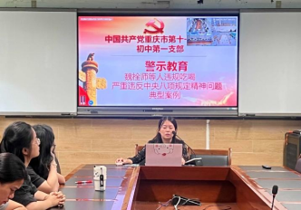 2025年6月24日,初中第一党支部在文德中学cbd校区和茶园校区阶梯教室连线召开党员大会。会议由党支部书记杨柳青主持,全体党员同志参加会议。本次大会以开展深入贯彻中央八项规定精神学习教育为主题,通过党课学习、案例警示、心得分享以及庆祝党员“政治生日”等环节,进一步强化党员的党性修养和纪律意识。
