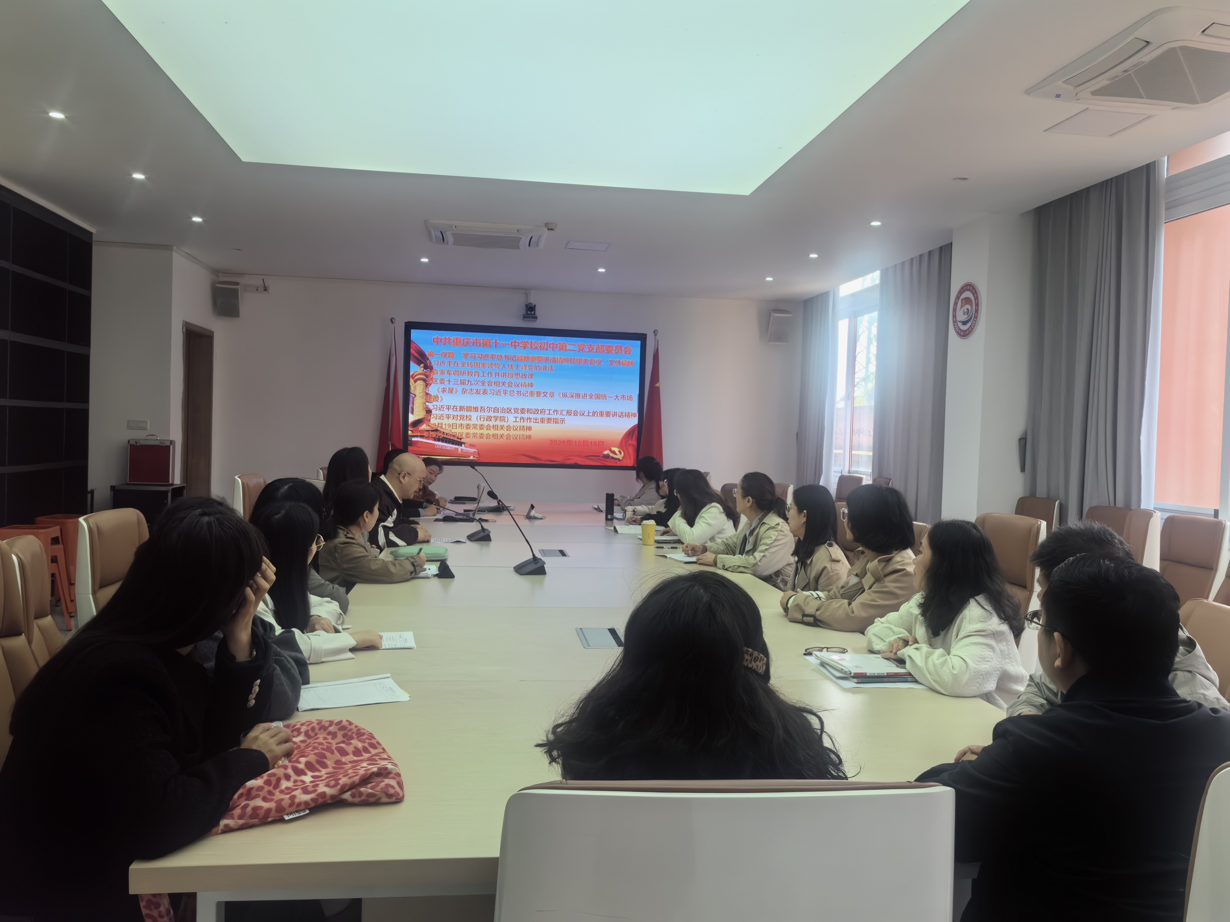 10月16日,初中第二党支部全体党员同志齐聚圆桌会议室,开展十月主题党日活动。活动紧扣理论学习与工作推进双重主线,在思想引领中凝聚共识,在部署落实中强化担当。活动由党支部刘宇书记主持。