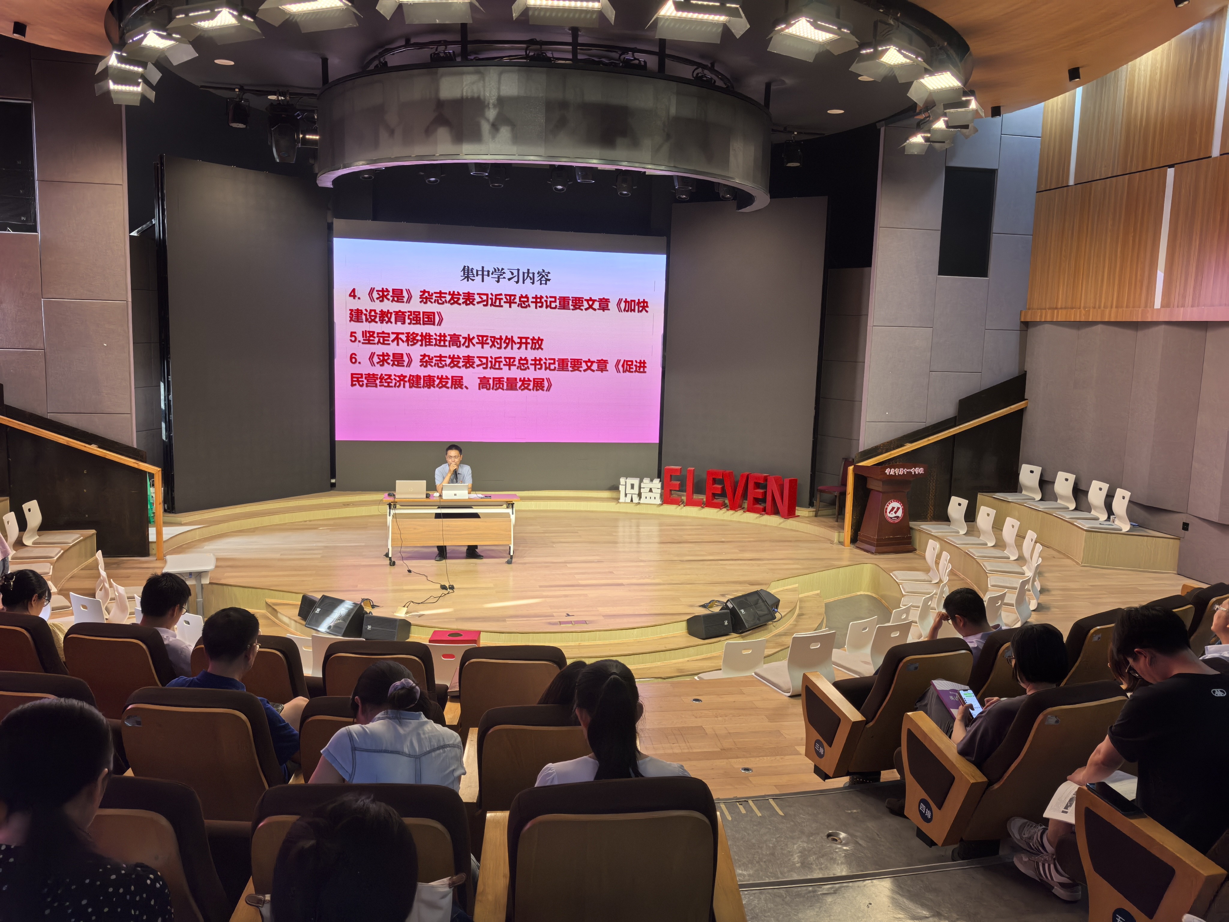 随后,刘东华书记给全体党员同志们带来了一堂学习贯彻党的二十届四中全会精神专题党课,全面完整地学习了《中国共产党第二十届中央委员会第四次全体会议公报》。刘东华书记强调,学习宣传贯彻全会精神,是当前和今后一个时期的重要政治任务。今天我们共同学习公报内容,既是要统一思想、凝聚共识,让大家深刻把握时代发展大势,更是要找准工作切入点,把全会精神转化为教书育人、管理服务的实际成效。
