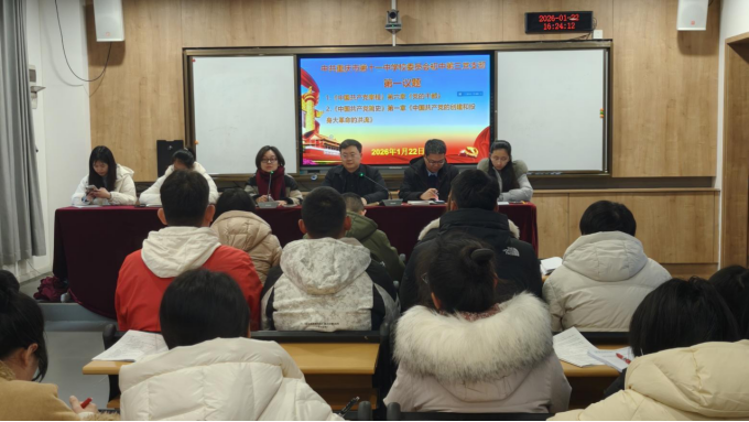 为深入学习贯彻党的最新理论成果与上级会议精神,筑牢党员思想根基,凝聚奋进力量,2026年1月22日,中共重庆市第十一中学校委员会初中第三党支部召开1月党员大会。会议由支部书记李江主持,全体党员同志参会,以集中学习、专题研讨和工作部署相结合的形式,推动理论学习走深走实,为新学期教育教学工作高质量发展蓄能。