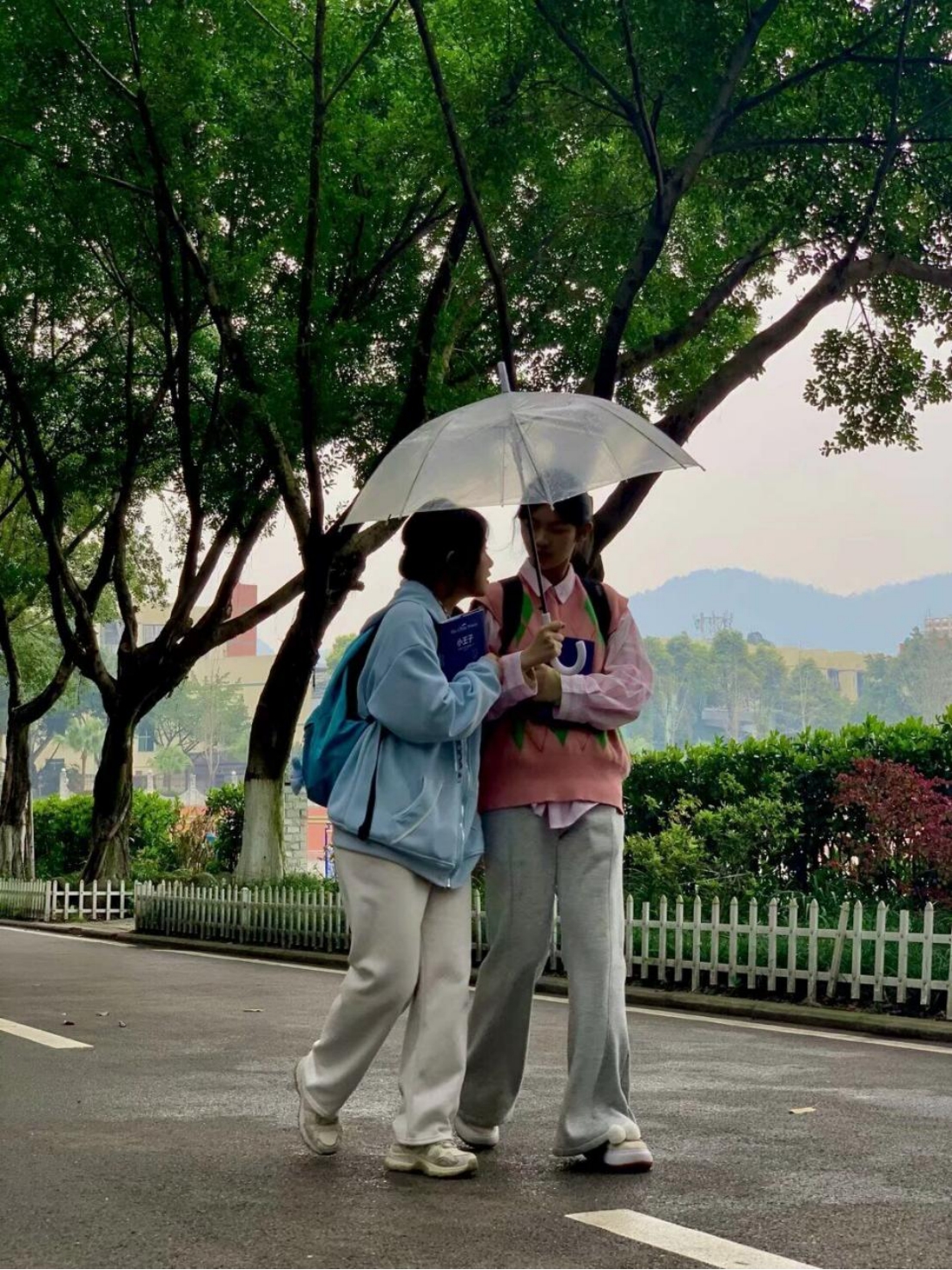 《雨季寻光》由青鸟微影社高2026届学生集体创作完成,讲述了一名女生因挚友转学而进入新环境后,在孤独中尝试融入、经历迷茫,最终领悟到“真实自我”才是战胜内心空虚的关键的成长故事。影片以“雨”与“伞”为意象贯穿始终,画面清新,情感真挚,深刻触及青少年在人际交往与自我认同过程中的普遍心理。